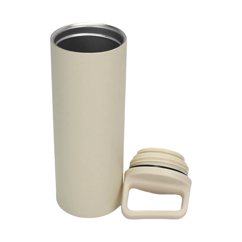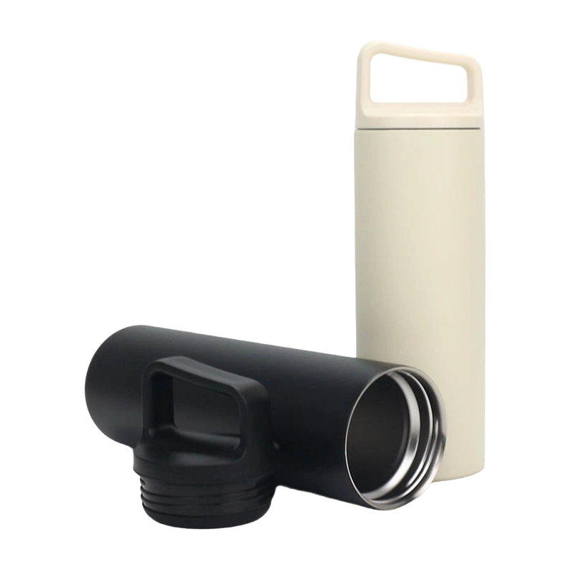 Cette bouteille thermos portable présente un corps droit minimaliste avec des lignes épurées et un look élégant et moderne. Le couvercle est équipé d'une poignée robuste pour un transport facile. Disponible en deux formats : 350 ml et 600 ml, il répond aussi bien aux besoins d'hydratation quotidiens que prolongés. La version plus petite est parfaite pour une portabilité compacte, tandis que la plus grande est conçue pour une utilisation plus longue.